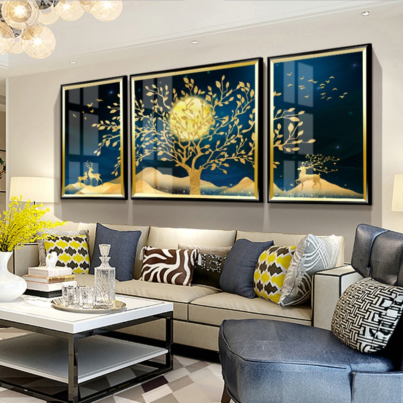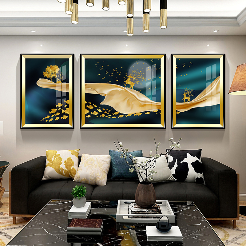 Light Extravagant Living Room Decoration Painting Modern Minimalist Sofa Background Wall Triple Painting Eurostyle Atmospheric Fresco American Hung Painting