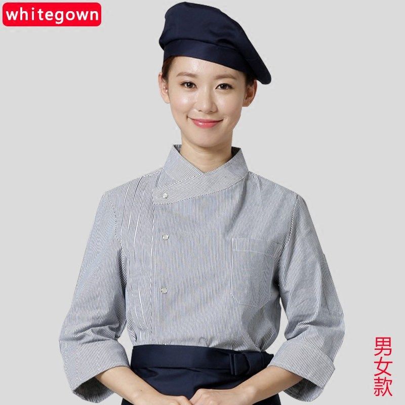 Chef Worksuit Seven-Minute Long Sleeved Spring Summer Han Hotel Western Restaurant Kitchen Cotton Breakfast Worksuit for Men and Women