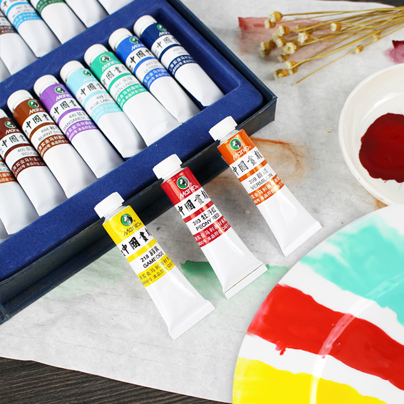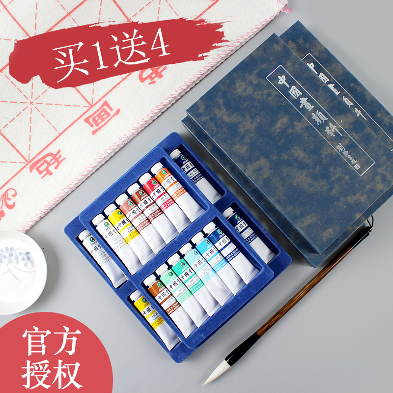 Mulley China Painting Paint Professional National Painting Tool Suit 12 Color 18 color 18 color stroke ink painting landscape painting material full set of adult country painting paint