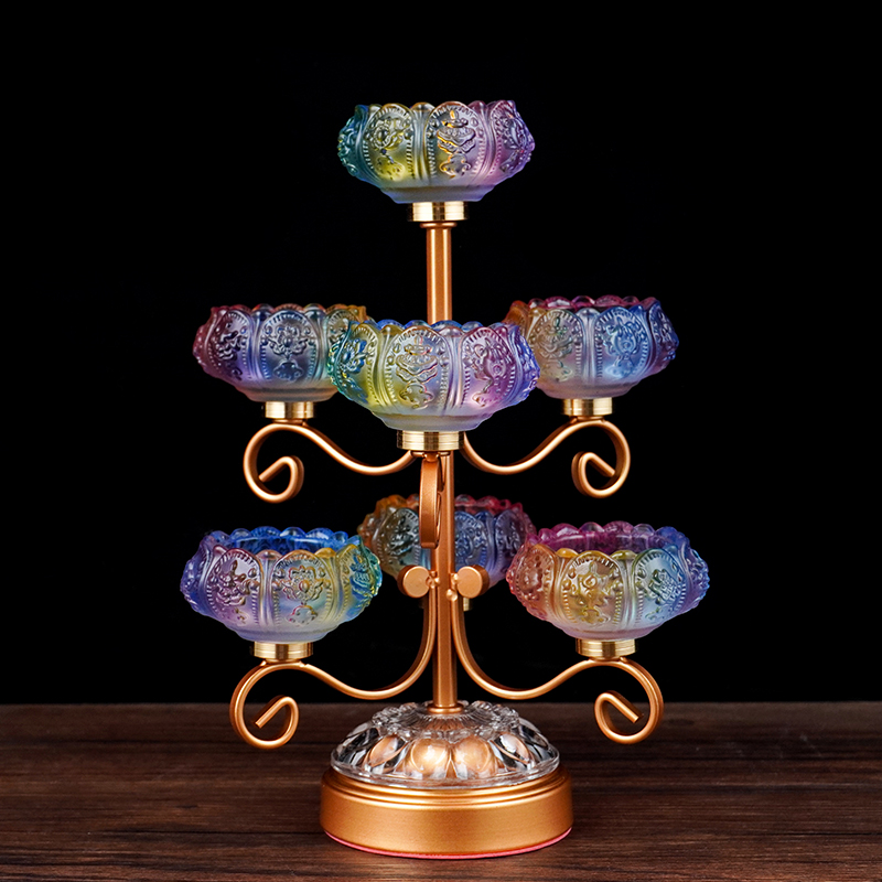 Eight auspicious colorful-seven-color-antique lamp stand eight auspicious colorful-seven-color-red and golden lamp stand yellow flower-seven-color lamp stand-seven-color lamp stand-seven