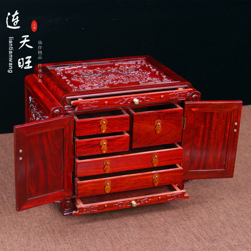 Zambia Blood Sandalwood Multilayer Jewelry Box Red Wood Jewelry Containing Box Wood With Lock Upscale Chinese Retro First Decorated Box