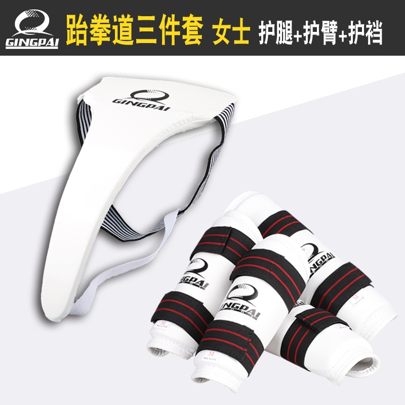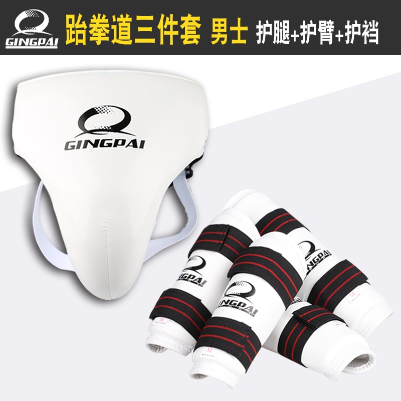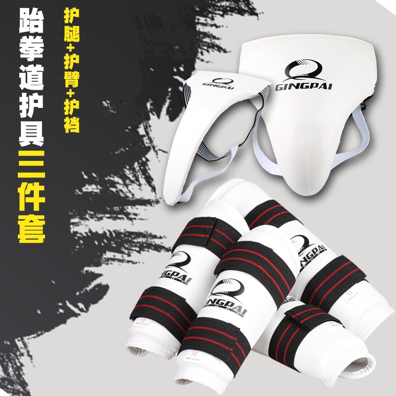 Taekwondo protective gear three-piece set Karate boxing sanda arm protection Leg protection crotch protection combination training protective gear full set