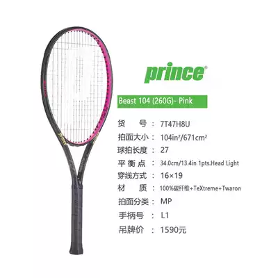 Prince tennis racket Beast pink professional adult carbon fiber Lady racket all carbon unthreaded