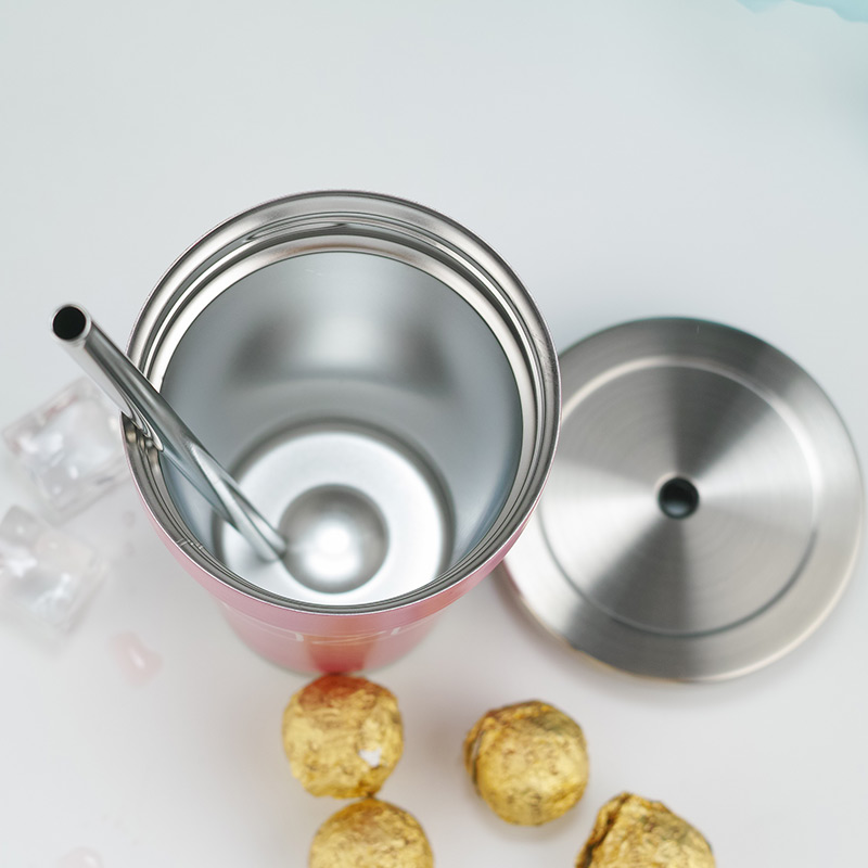 gymramm stainless steel adult straw cup Korean creative leak-proof portable double-layer thermos student water cup