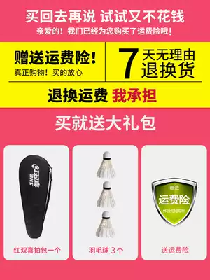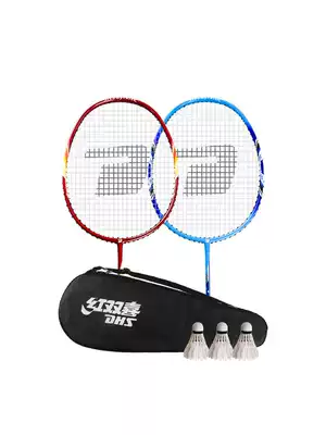 Red double happy badminton racket double-shot durable full carbon racket ultra-light adult children Primary School students fight suit