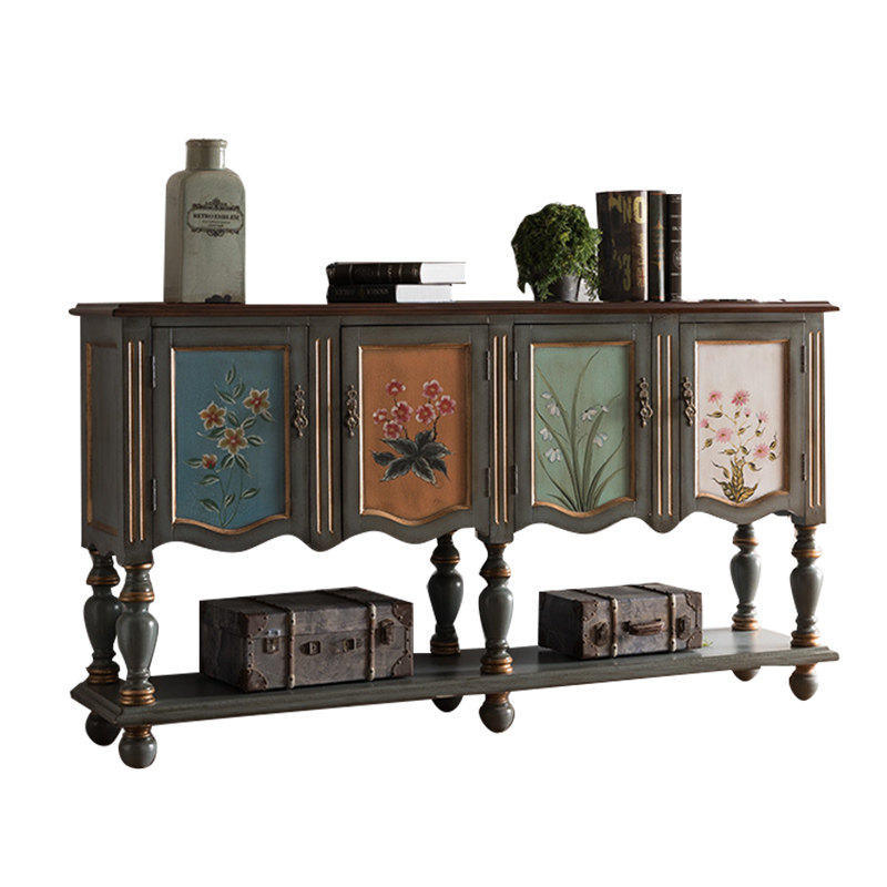 American painted retro porch table Mediterranean drawer cabinet solid wood double-layer storage porch table