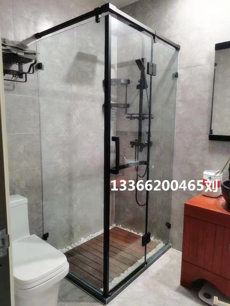 Custom dumb black shower room diamond type bathroom glass door toilet partition bath room sliding Beijing bag installation