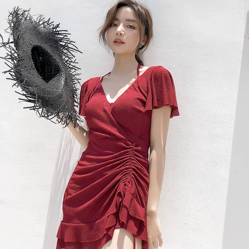 Swimsuit women's summer jumpsuit cover belly thin conservative students 2021 new fashion hot spring Korea seaside fairy swimsuit