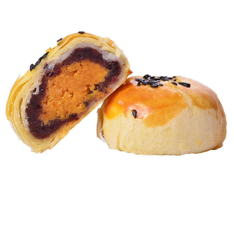 Red bean filling wheat flour salted duck egg yellow snow skin, drinking water fresh eggs white sugar black sesame white wine edible salt