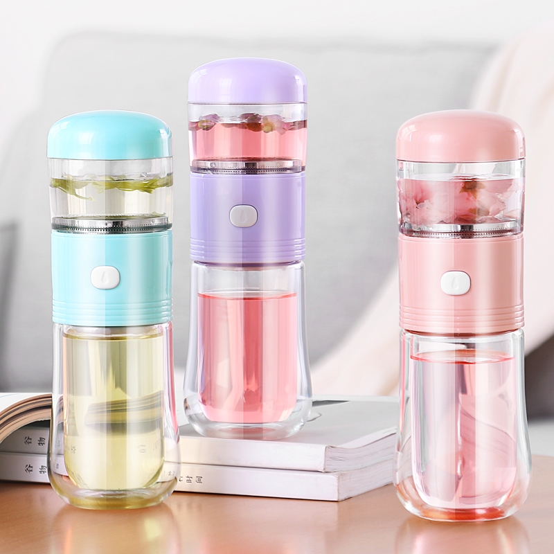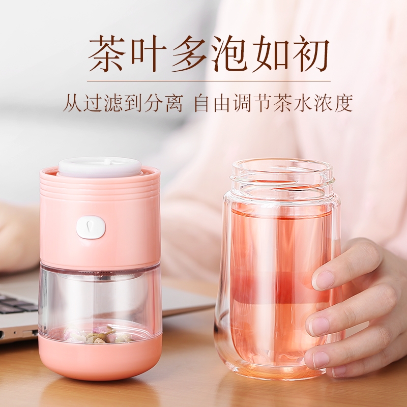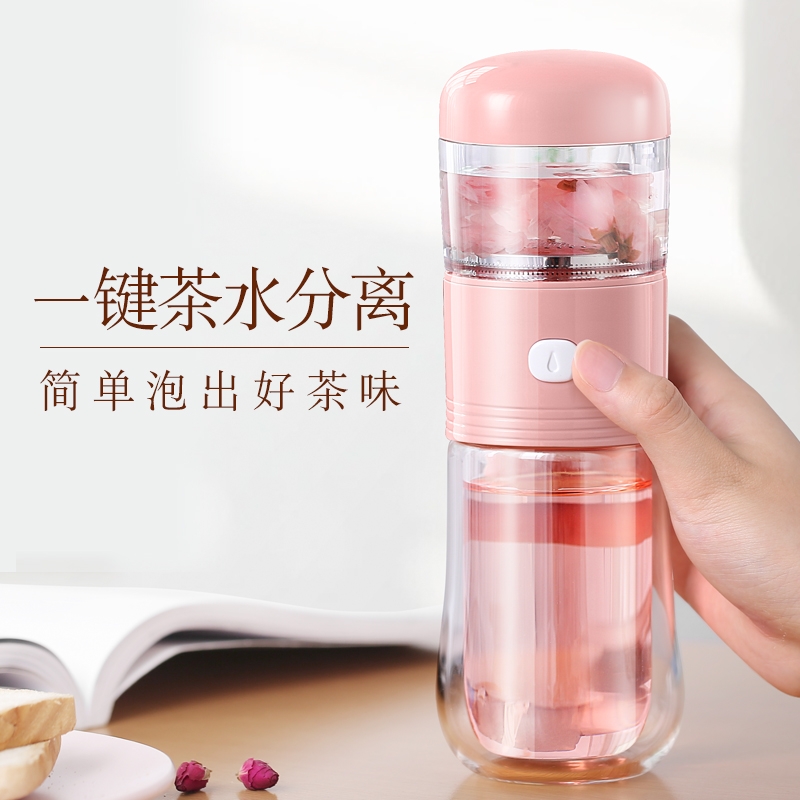 Brand one-click tea water separation tea cup double-layer transparent glass drinking cup female portable office filter