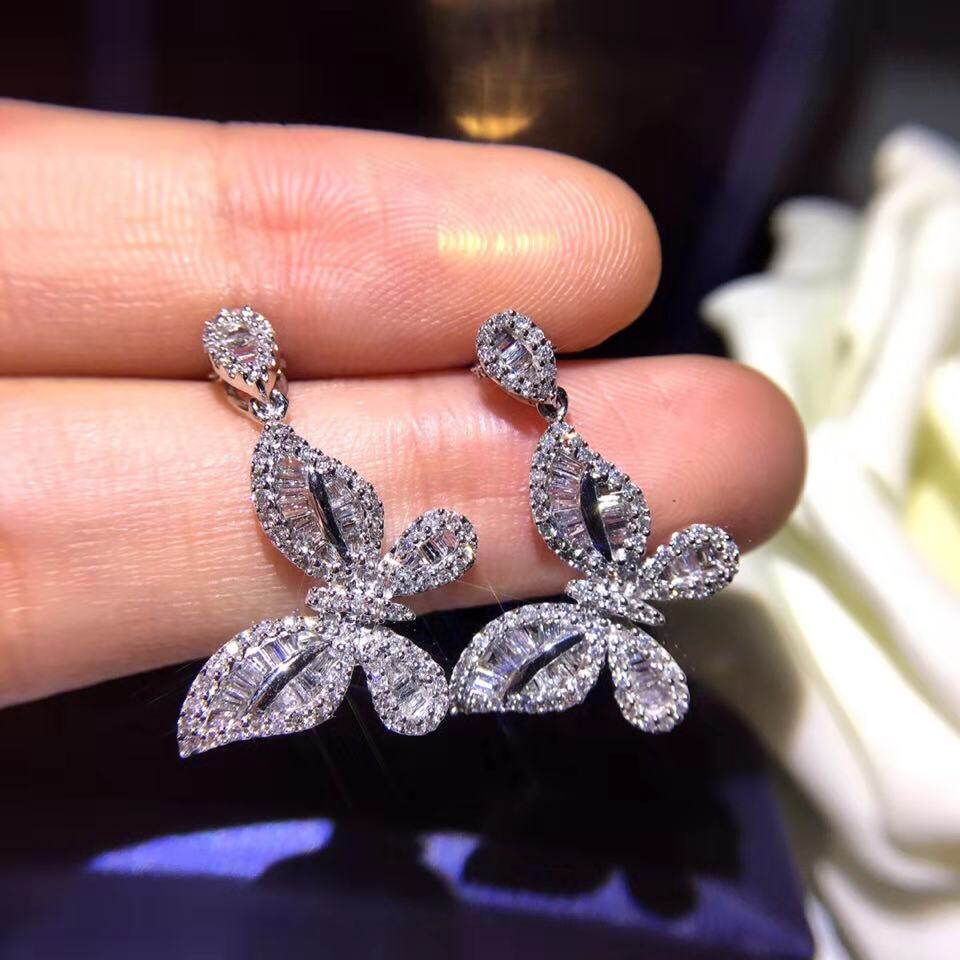 Spot 18k white gold t square diamond ladder square butterfly necklace pendant butterfly love flower round diamond real gold real diamond pendant clavicle chain