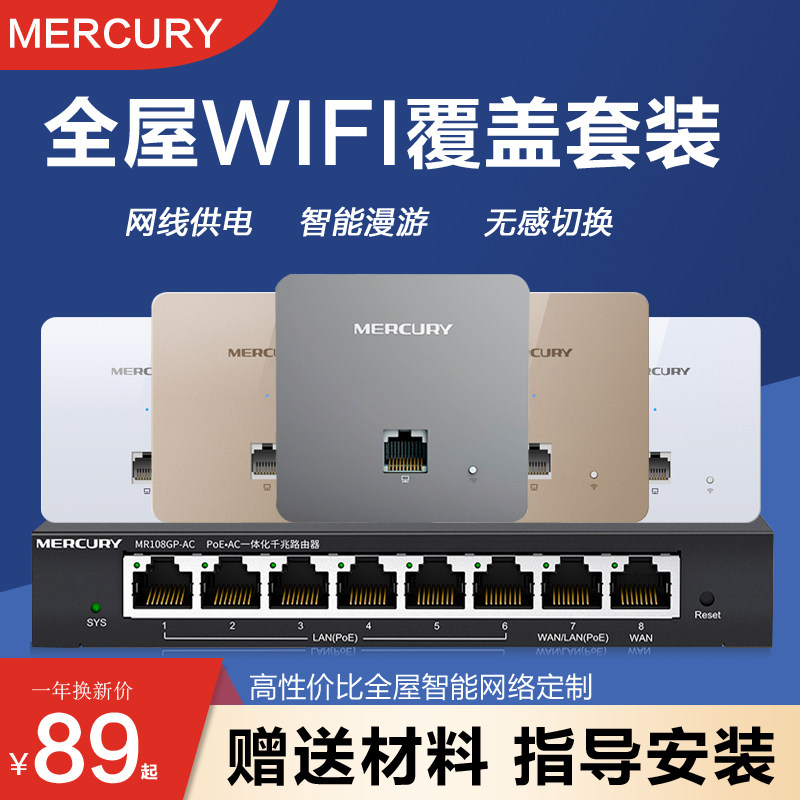 Mercury wireless ap panel gigabit whole house wifi coverage set 5G dual frequency 86 type wall wall embedded poe power supply router all-in-one home villa large-scale intelligent networking