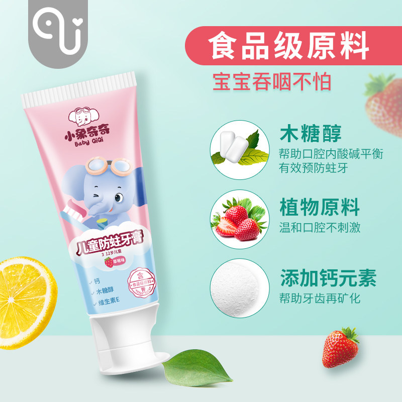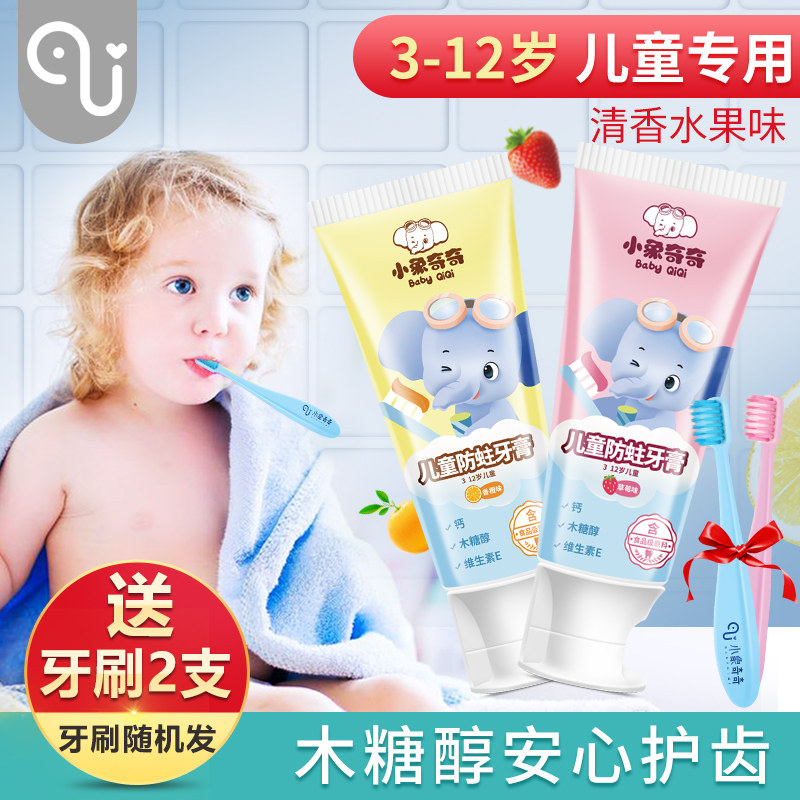 Baby Elephant Kiki children's toothpaste 3-12 fluoride tooth decay baby toothbrush set can swallow more than 6 years of age during tooth replacement