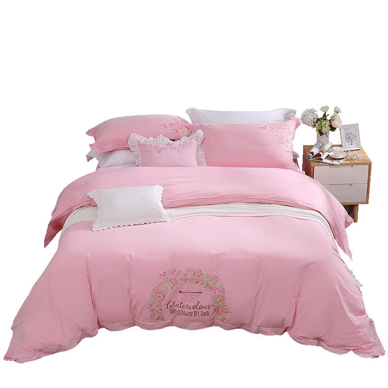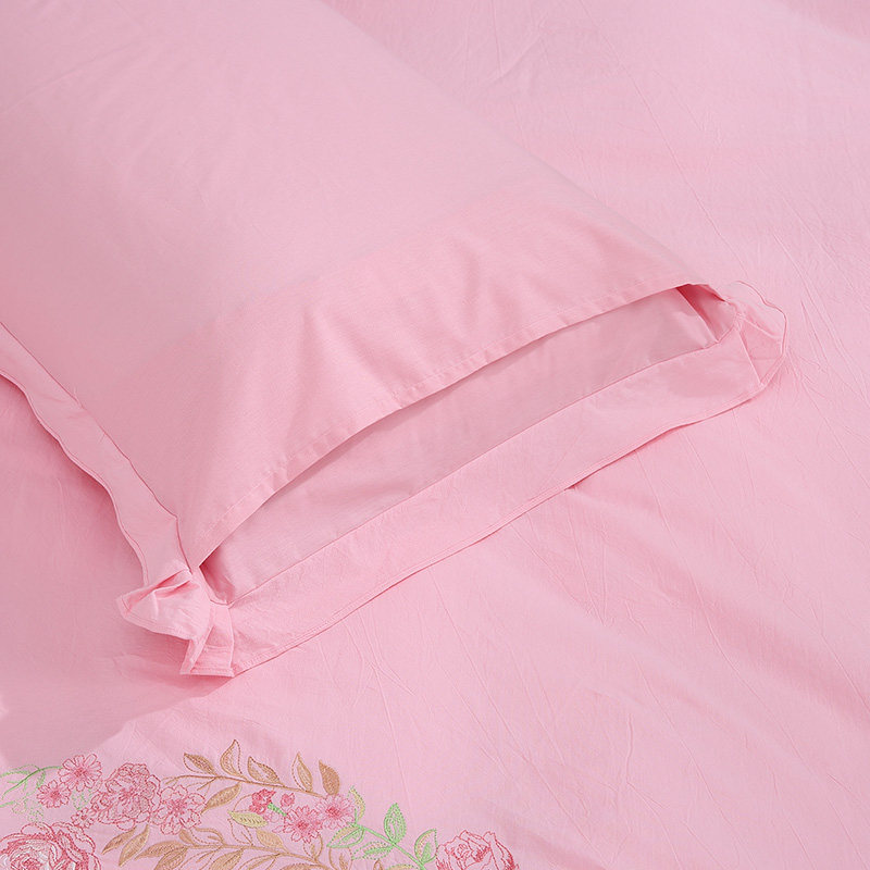 Fuana Home Spun Sacred Flowers Bed Linen Quilt Cover Pure Washed Cotton Four Pieces Full Cotton Pure Cotton Pink Male wind