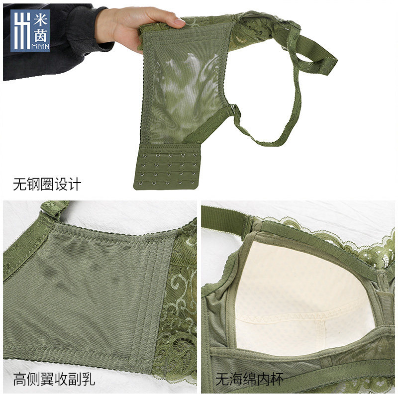Full-cup underwear women's no steel ring big breasts show small ultra-thin bras collect vice breasts gather five-breasted summer bra