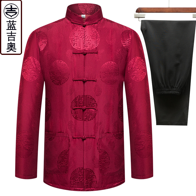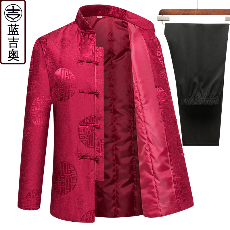 Silk Tang Cotton Cotton Man Winter Sand Silk Daddy Wedding Clothes Grandparents Birthday Chinese Wind Cotton Clothes