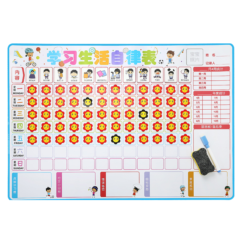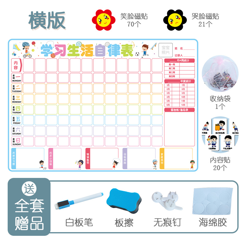 Children's growth Self-discipline table Work and rest management Reward wall sticker punch-in plan Reward and punishment 3 years old 4 kindergarten time Good habit development behavior Children learn artifact Life record Primary school student