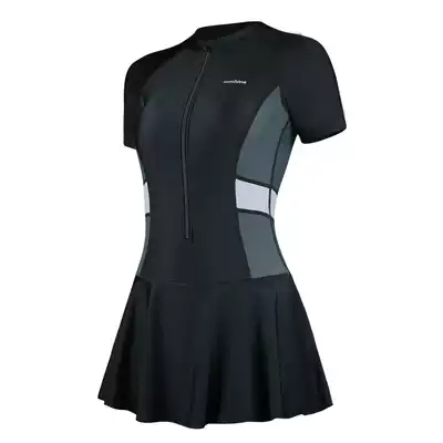 Long-sleeved sports swimsuit women's one-piece skirt boxers large size fat mm hot spring students show thin swimsuit conservative cover belly