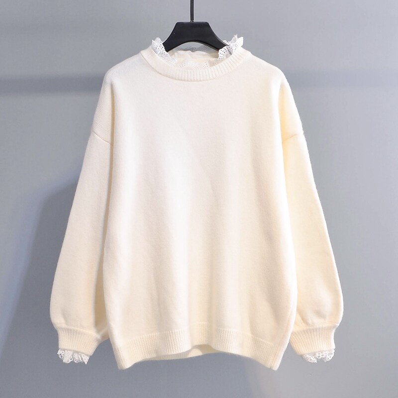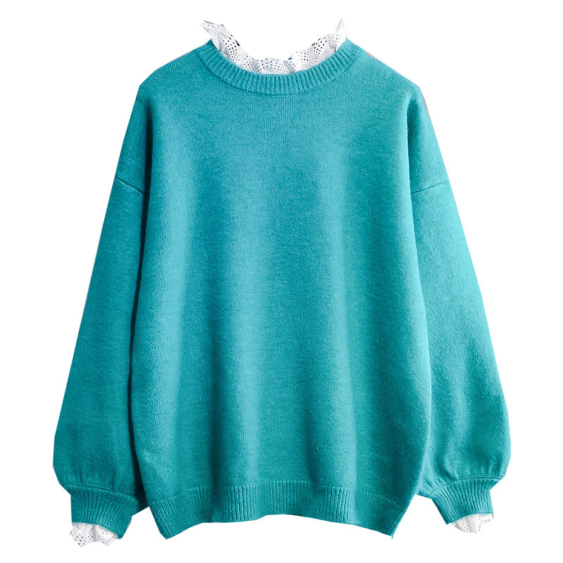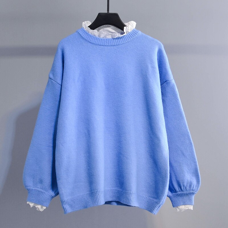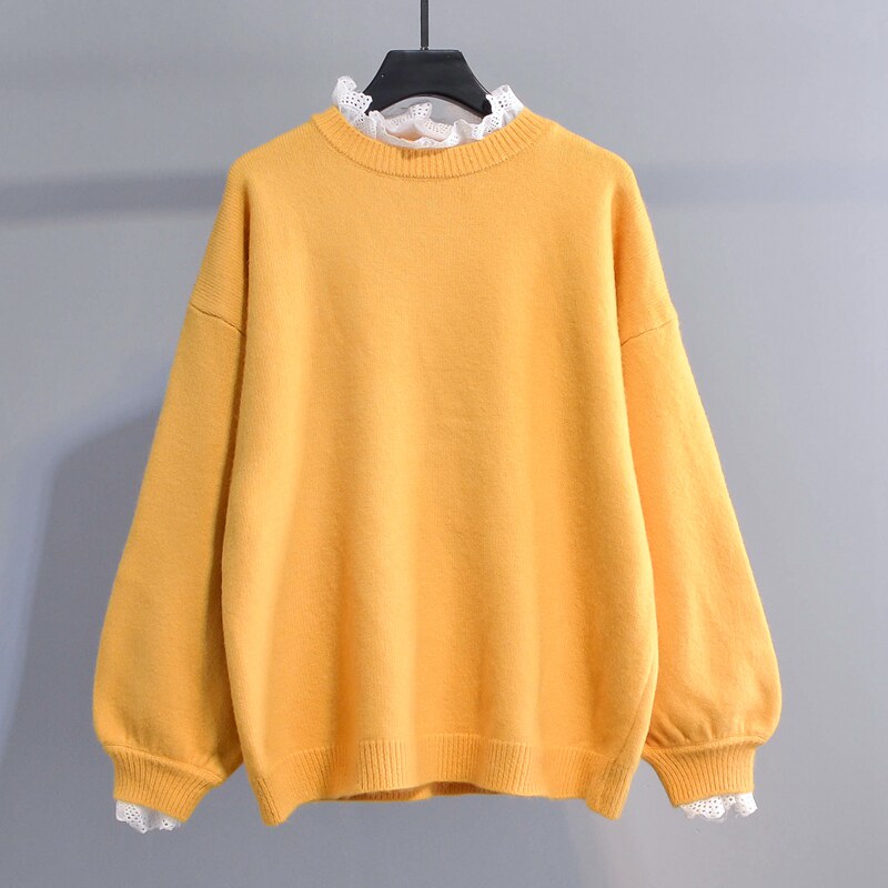 Small fresh and sweet stitching fake two-piece pullover sweater women's 2022 autumn and winter new lace knitted sweater top