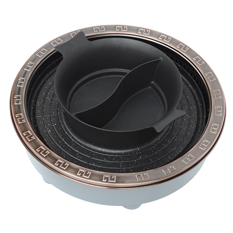 Junyao shabu-shabu-baked integrated table smokeless hot pot table commercial Korean-style electric barbecue oven barbecue table marble table and chair combination