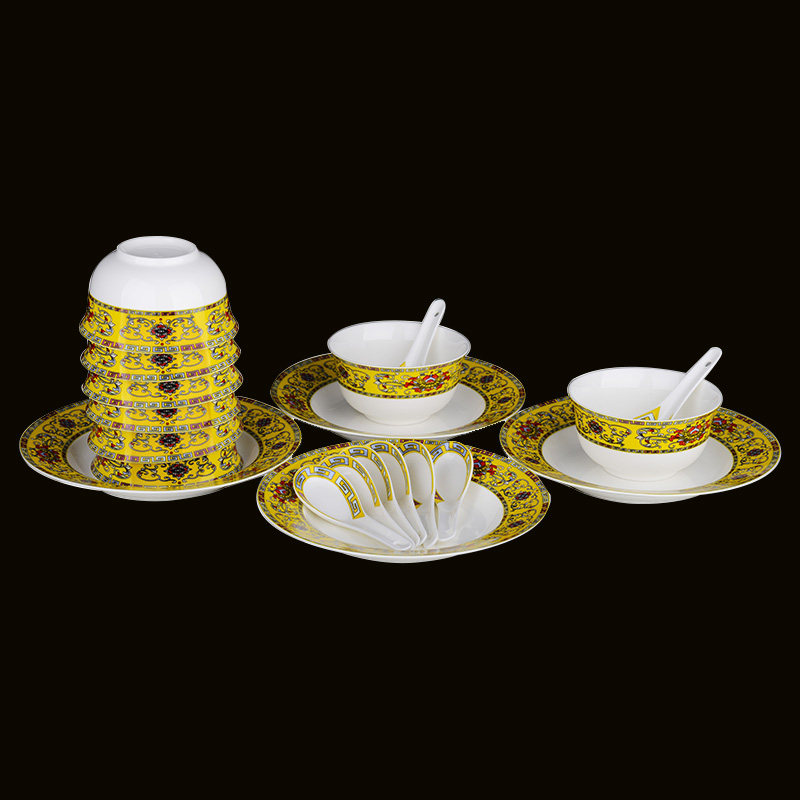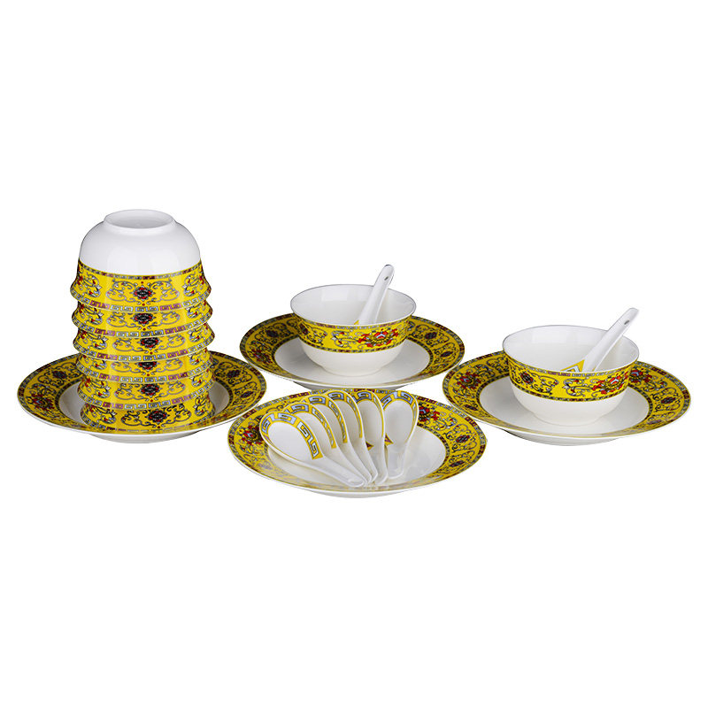 lxbf dragon Xingbao Fu printed color cutlery sets 20 pieces of colored glazed glaze Chinese style Phnom Penh combined ceramic European style merchants with