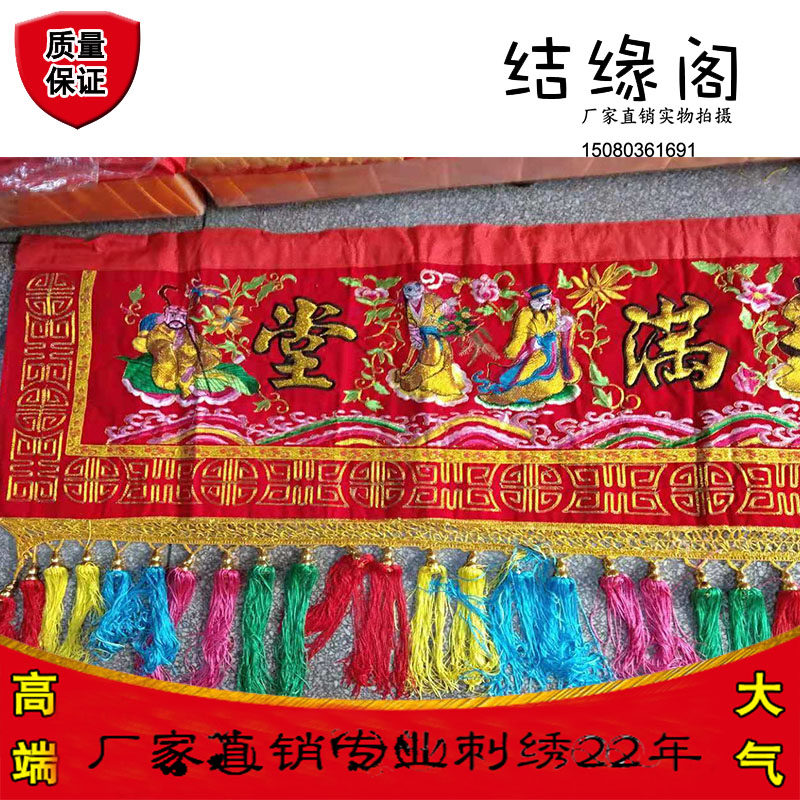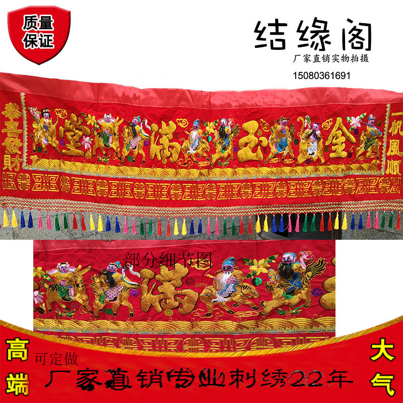 Convex floating embroidery high-end door color hanging door red color cloth eight fairy color gold Jade full banner housewarming wedding celebration