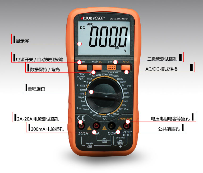 VC980 standard VC980 standard 20A special tip pen VC980 standard 9V charger set VC980 standard 20A special tip pen 9V set