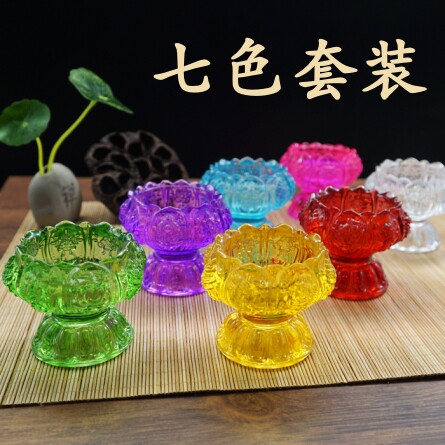 Seven-coloured glazed crisp oil seat windproof wax candle holder long Ming light for the lamp Buddha lamp Seven Star Lotus Candle Crisp Oil Lamp Holder-Taobao