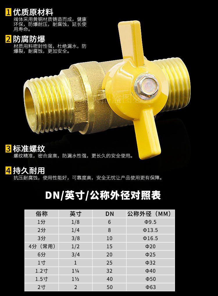 2 minutes 3 4 Double inner wire Outer tooth copper ball valve Gas gas valve switch Water heater Pneumatic water pipe fittings