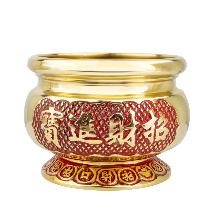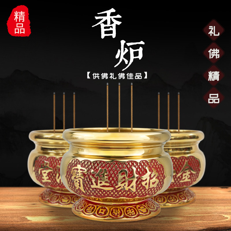 Jinyuan Buddha with Buddha hall offering supplies incense burner pure copper money round edge burning incense burner home indoor God of Wealth incense burner small