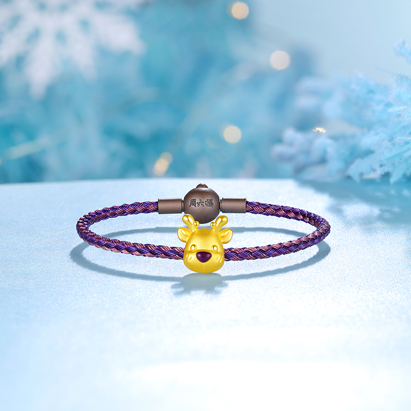 Weekly Liufu Jewelry Gold Handmade Woman 3D Hard Gold Small Deer Transit Bead Foot Gold Hand Rope To Send Girlfriend Gift Handmade
