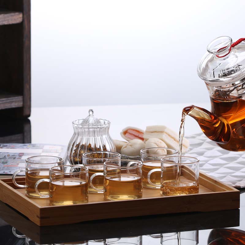 High boron silicon thickened heat resistant transparent glass tea drinking cup small tea cup with cup Gongfu tea with ear cup tea bowl for home