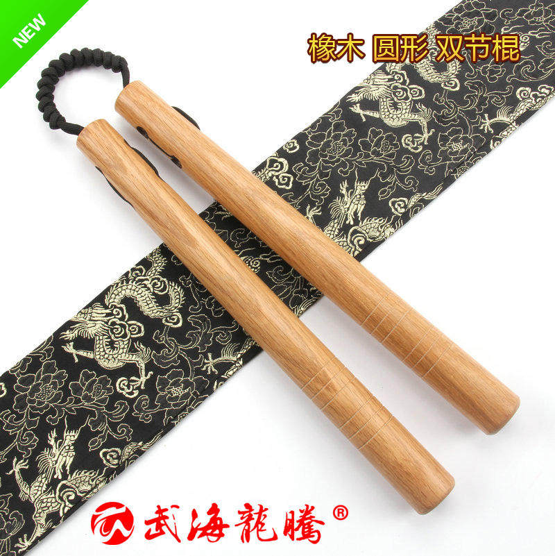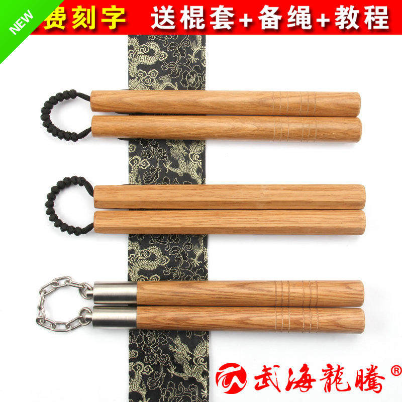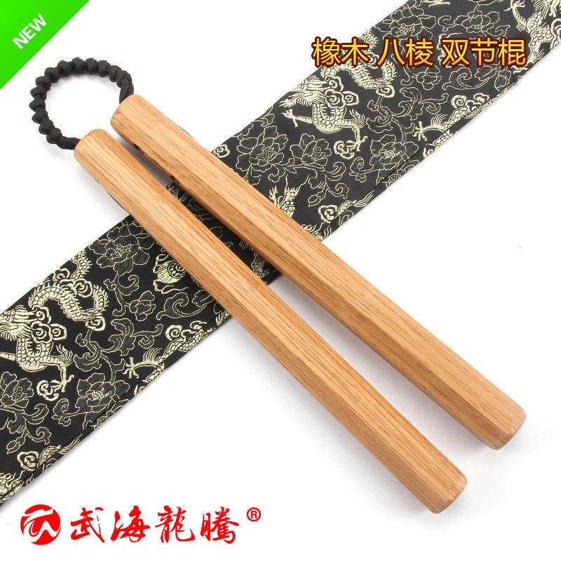 Wuhai Ronten Oak Wood Solid Wood Bi-Section Stick Steel Chain Octagonal Bi-Section Stick Two-Section Stick Two-Section Stick Training Safety