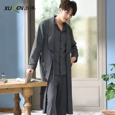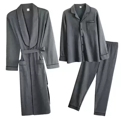 Pajamas men's winter long sleeve cotton youth warm big size Spring and Autumn long version of bathrobe robe home clothing three-piece suit