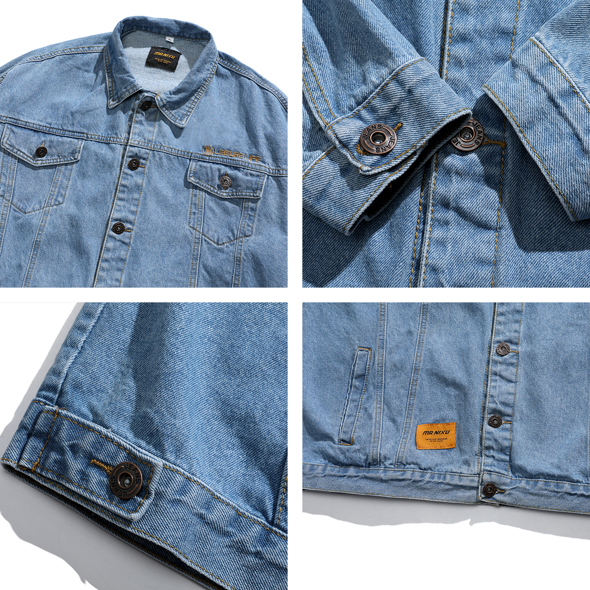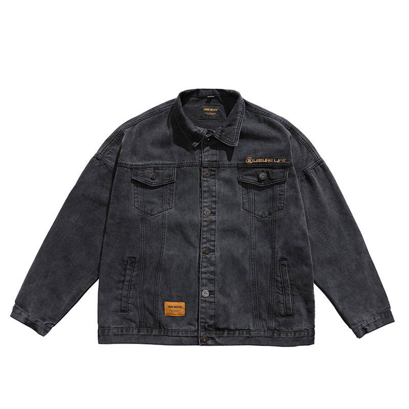 Autumn casual denim jacket men's fashion brand European and American street hip-hop wild loose tooling HIPHOP embroidery jacket