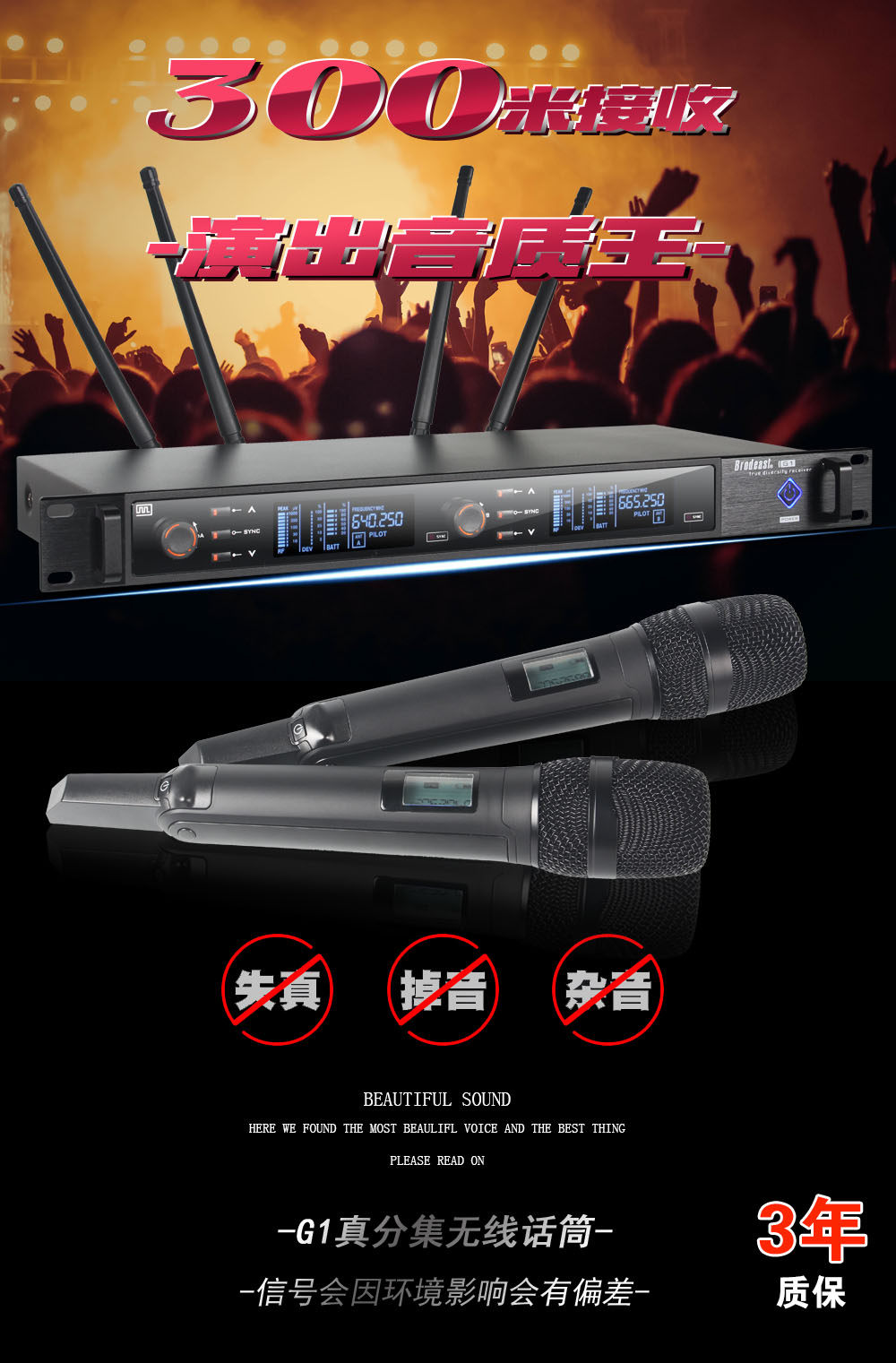 G1 true diversity UHF 300m ultra-long distance wireless microphone school playground 4 antenna stage microphone