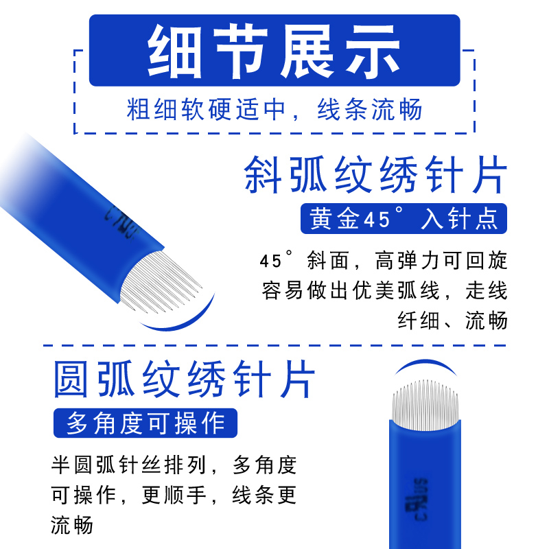 Blue Leather 14 Textured Embroidered Needle China Blue Eyebrow Wool Embroidered hand fog eyebrow slanted blue leather 18 rows of embroidered stitch sheet