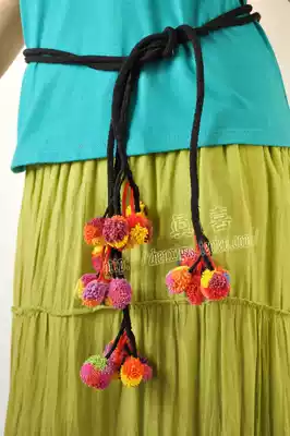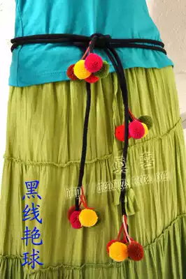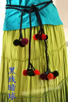 Black rope color cotton ball Black rope net color cotton ball Black rope colorful pompom Black rope dark pompom Red rope dark pompom woven wide color random