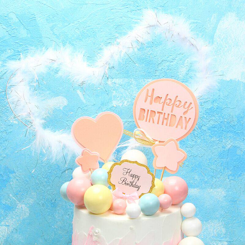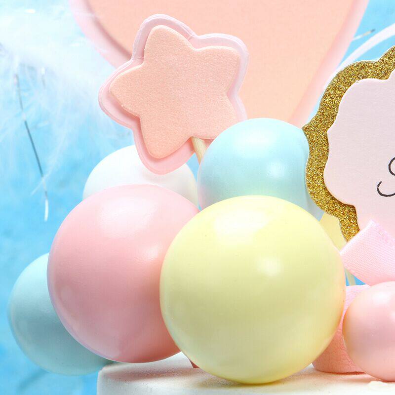 Net Red birthday cake decoration plug-in pink blue white yellow ball baking decoration accessories