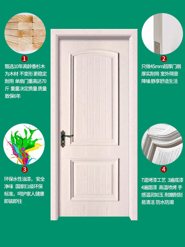 Customized wooden door in-room bedroom door solid wood composite paint door kitchen toilet sliding door simple white room door