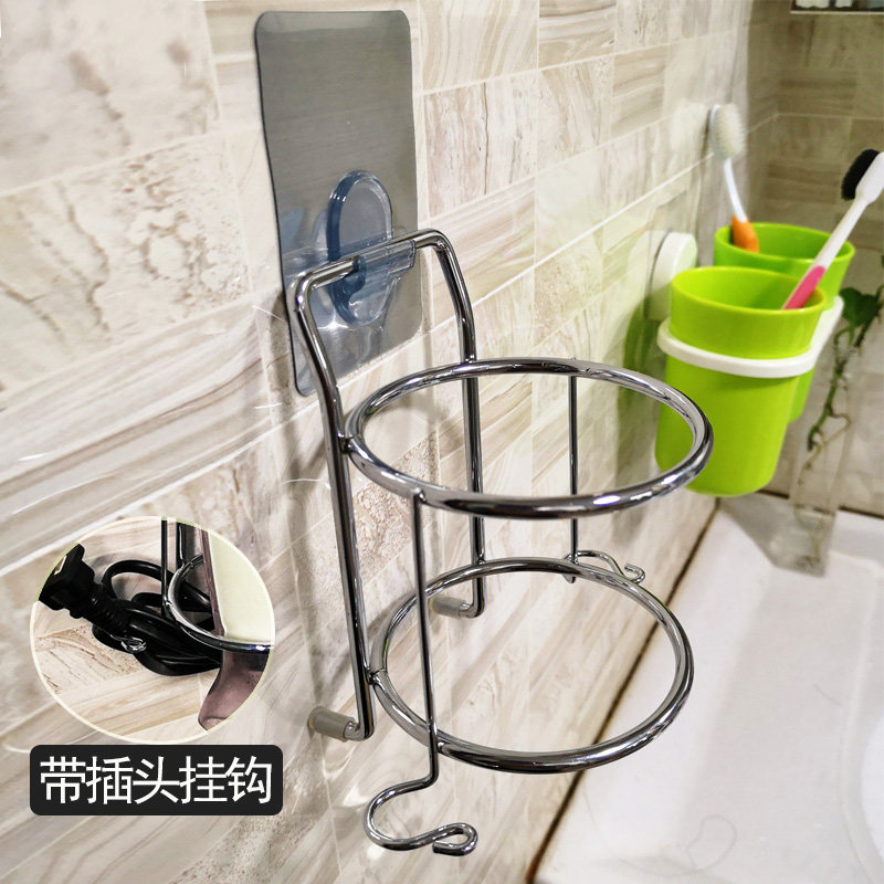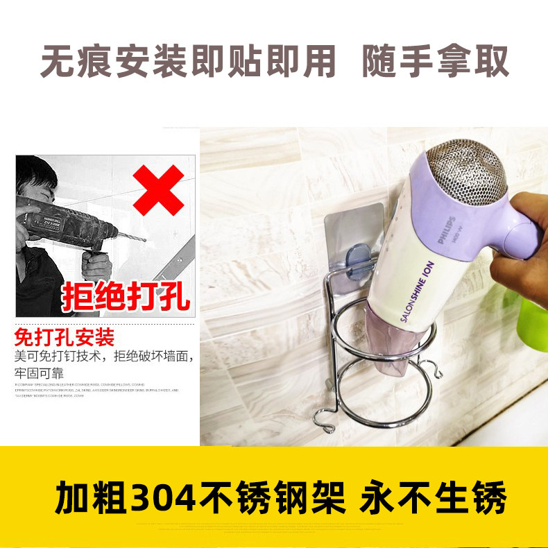 Wall-mounted hair dryer rack 304 stainless steel hair dryer hook Strong punch-free wall no trace storage layer shelf