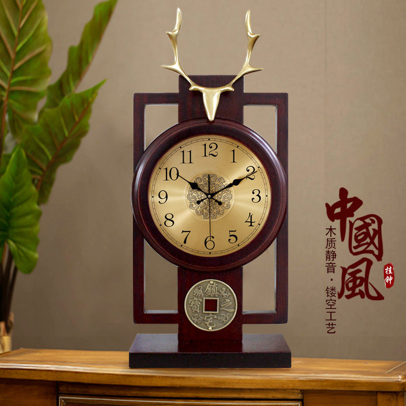Solid wood vintage table clock desktop pendulum desktop floor clock Living room table clock New Chinese style display clock household ornaments