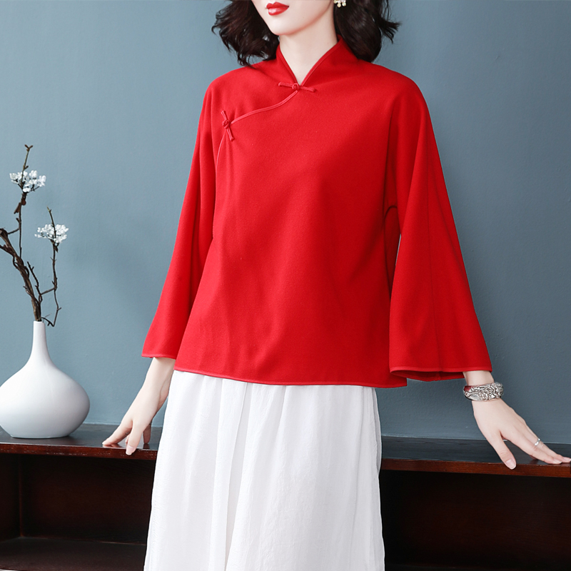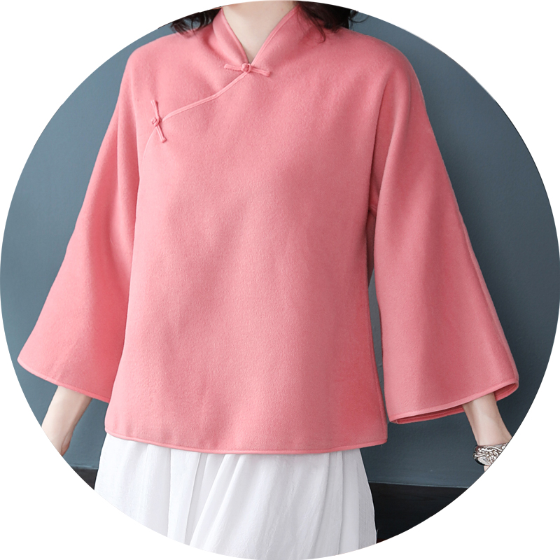 Tang dress top Tea suit suit Female Buddha smile edge Autumn and winter Chinese women's clothing improved Hanfu literary and artistic Chinese style top
