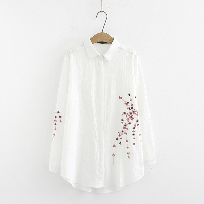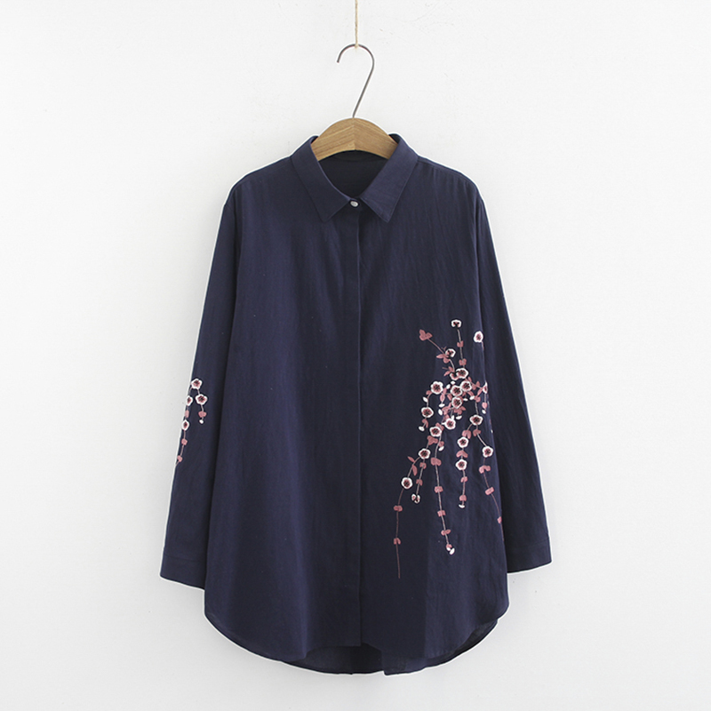In spring middle aged women's clothing plus fattening overweight mom embroidered long sleeve shirt female old man loose shirt