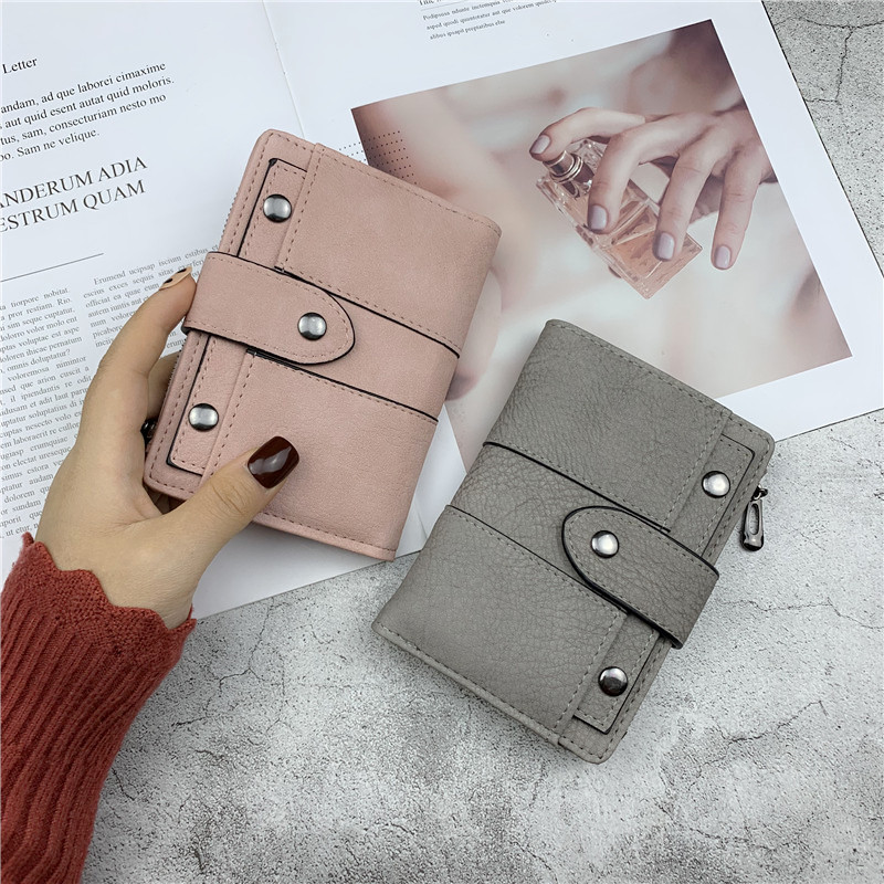 2021 new wallet women's short Korean version of simple matte two-fold buckle wallet multi-function card bag coin purse tide
