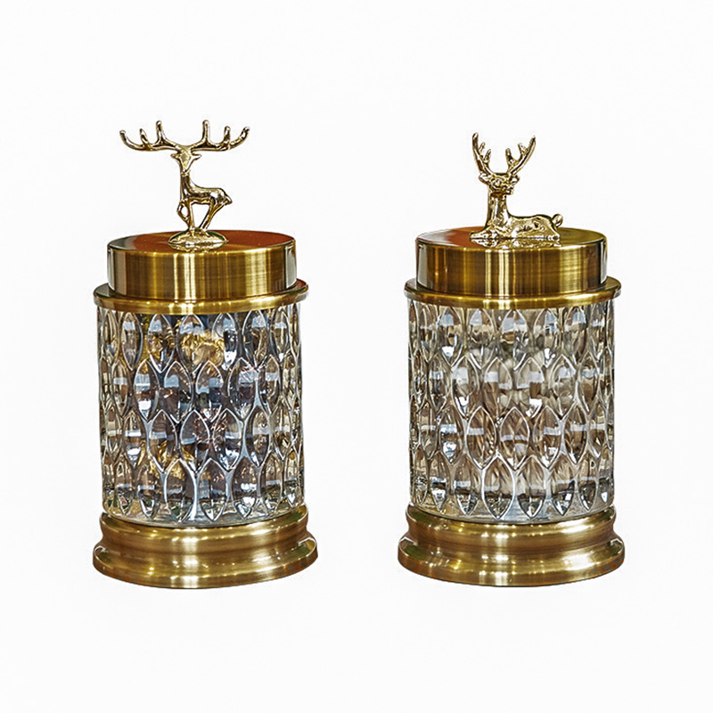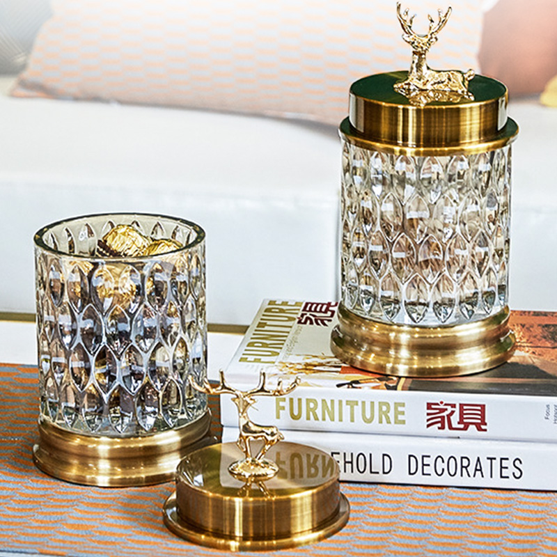 Nordic Wind Deer Head Glass Candy Canned Ornament Home Living Room Tea Table Furnishing Creativity With Lid Storage Tank Hem