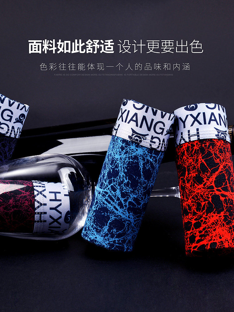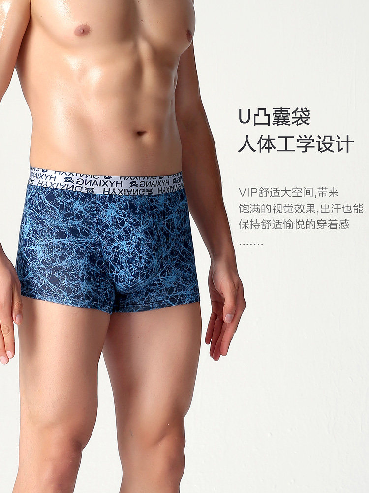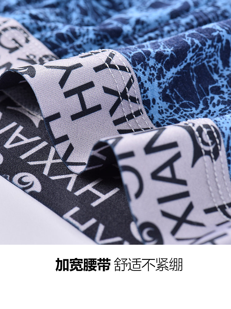 Hengyuan Xiang Briefs Male Ice Silk Four-corner Pants Mid Waist Breathable Printed Men's Underwear Youth Personality Four-corner Shorts Head