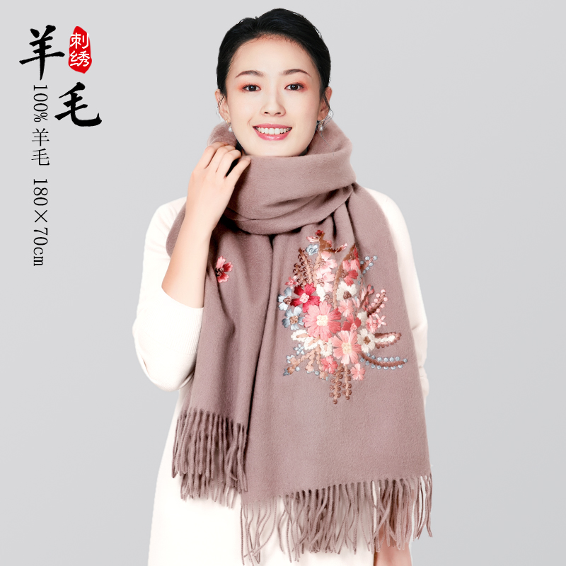 Wool scarf women's winter embroidery wedding cheongsam shawl cashmere gift mother dual-purpose warm autumn and winter scarf