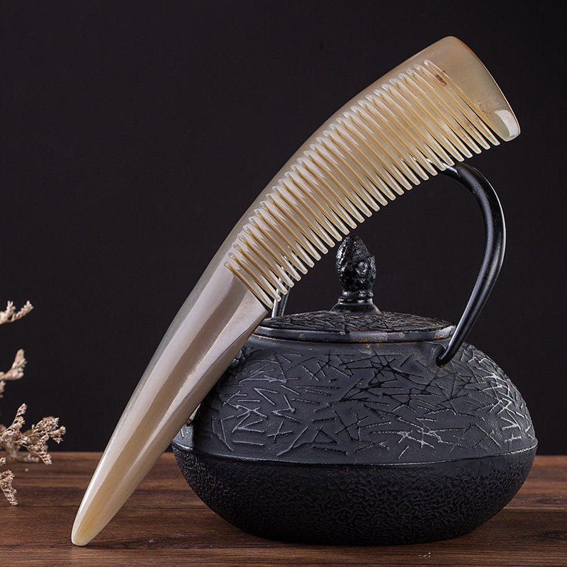 Natural white buffalo horn thickened and old white buffalo horn comb head massage