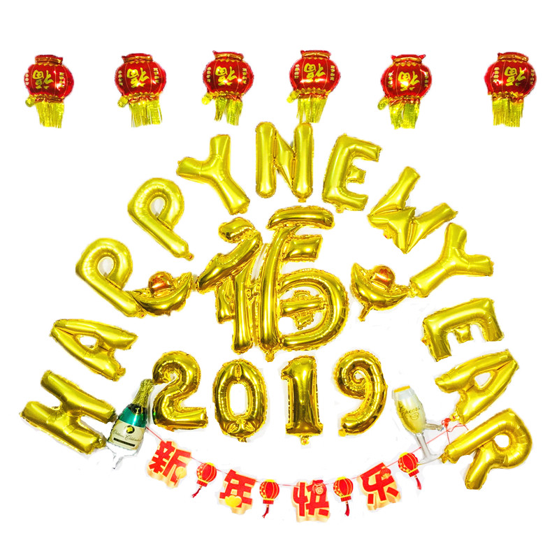 Golden New Year letters 1 set of pink New Year letters 1 set of champagne New Year letters 1 set of silver New Year letters 1 set 32 inch gold digital 201932 inch powder Digital 201932-inch blue figure 20